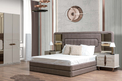 Yakut Yatak Odası Takımı, dolap, karyola, başlık, 2 komodin, şifonyer ve aynadan oluşmaktadır.